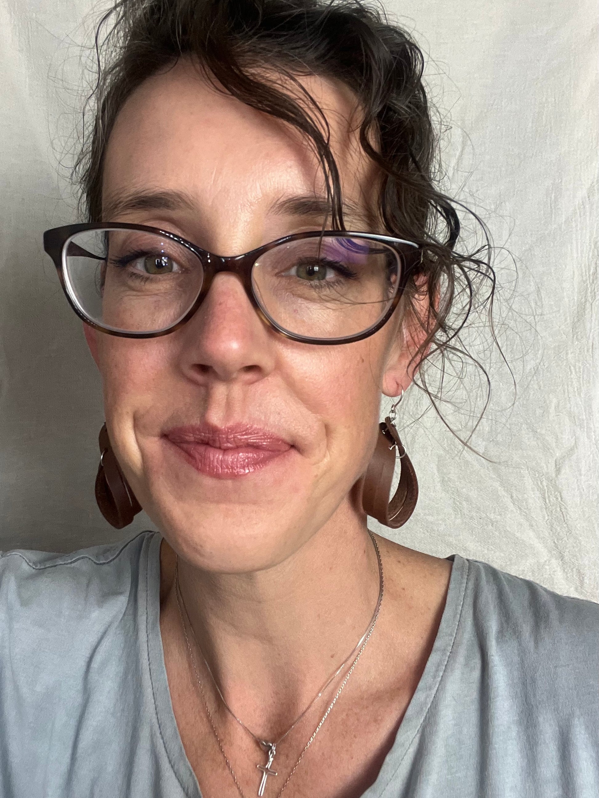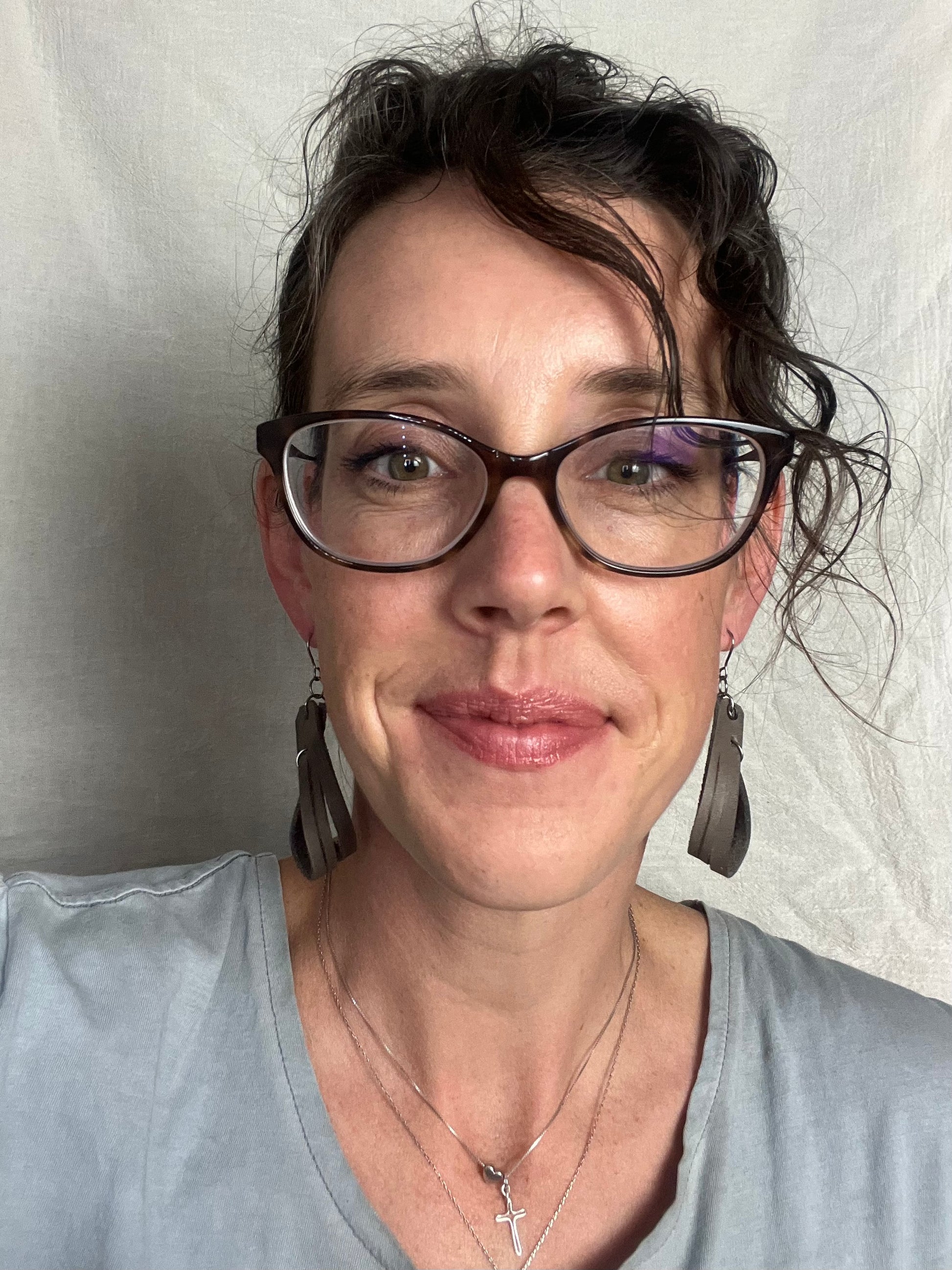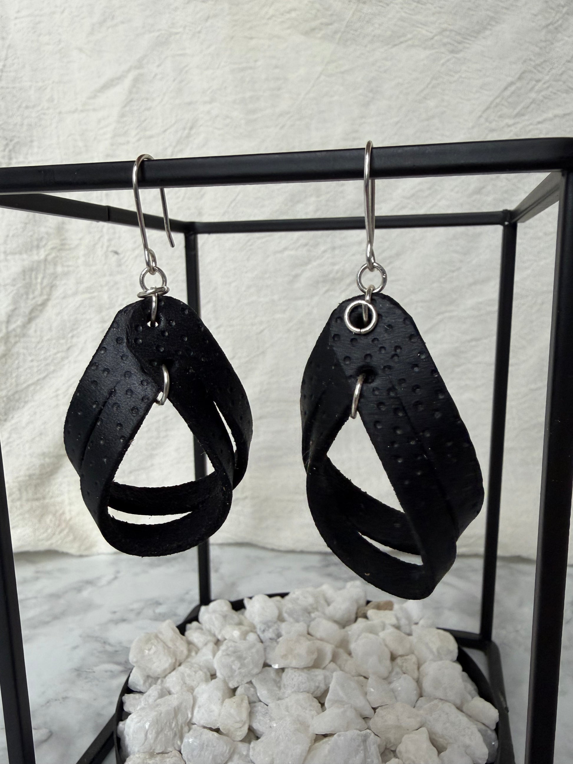 Our leather earrings are light weight, non-toxic, and metal allergy friendly. We provide a way to enjoy leather in a classy way. Designs are burned into the leather using pyrography. Made of high quality vachetta Italian full grain leather. Our Products are hand dyed with natural non-toxic processes for dying, as well as, conditioned and waxed. You have two options for metal: sterling silver and titanium.