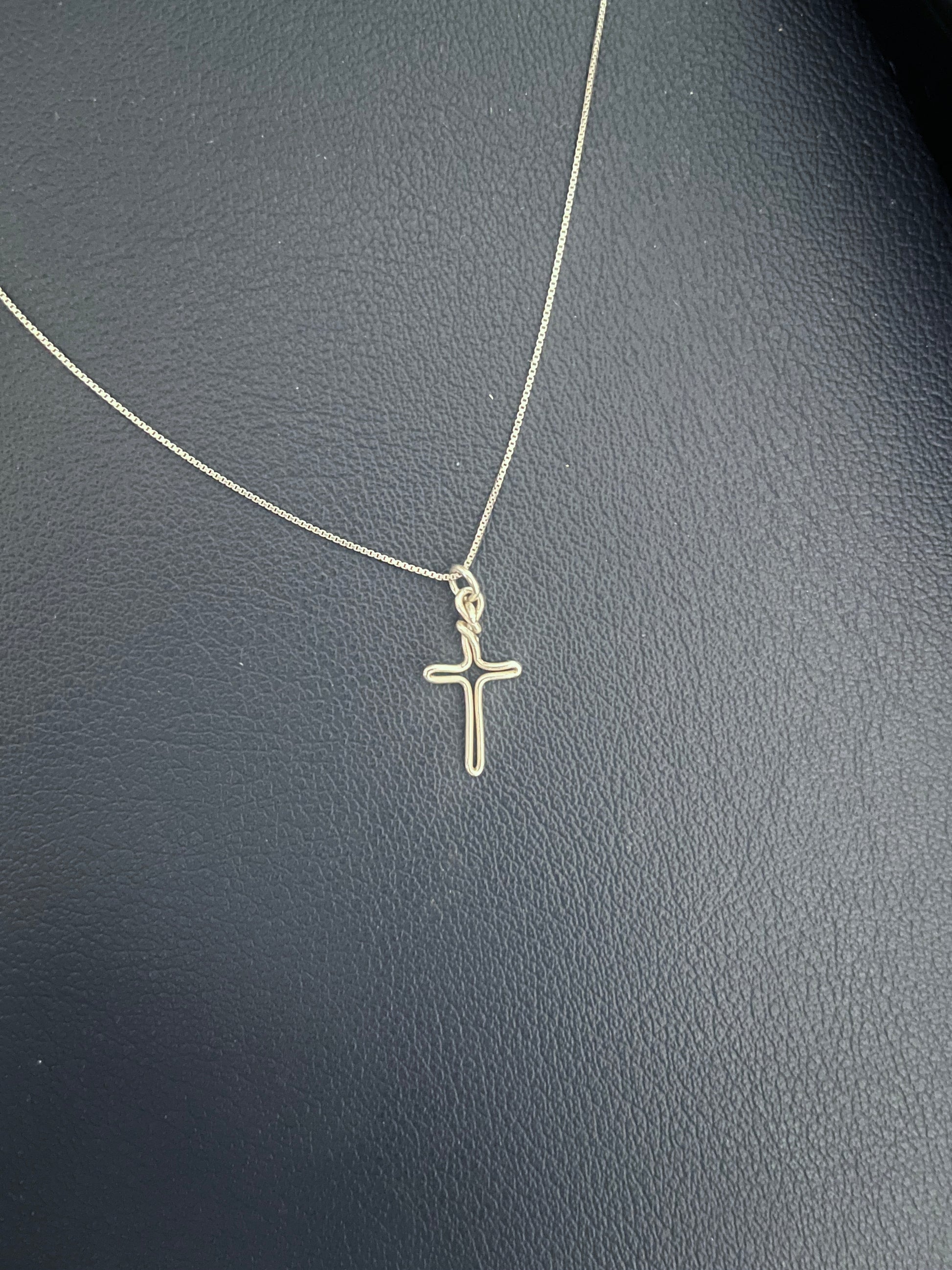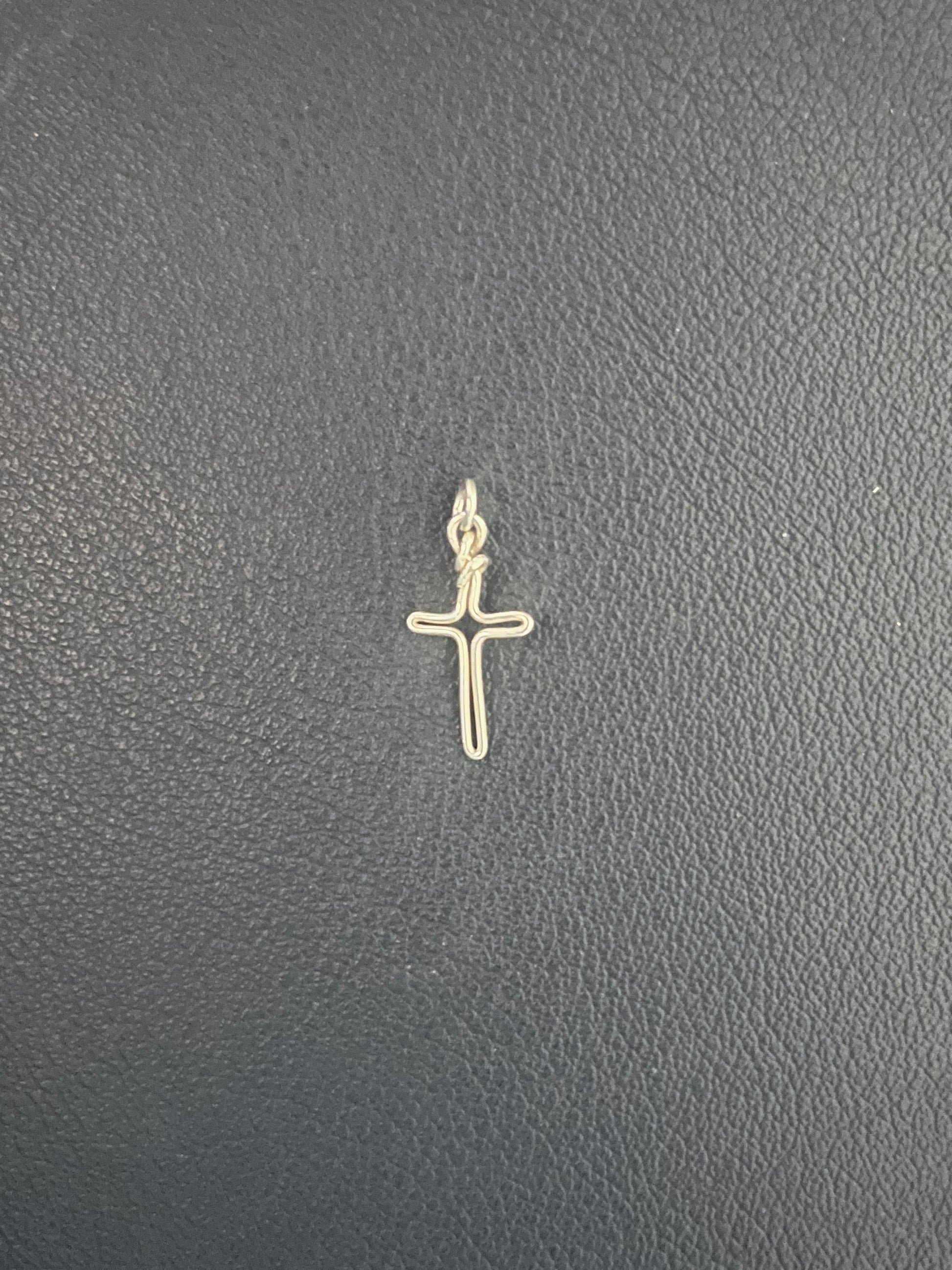 Cross pendent Make of sterling silver. The Measurements are 1.5 inches by .5 inches. Chain is not included.