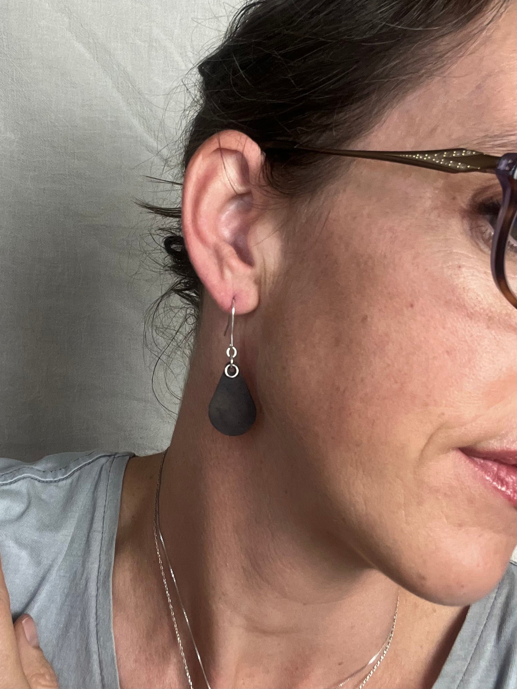 Our leather earrings are light weight, non-toxic, and metal allergy friendly. We provide a way to enjoy leather in a classy way. Designs are burned into the leather using pyrography. Made of high quality vachetta Italian full grain leather. Our Products are hand dyed with natural non-toxic processes for dying, as well as, conditioned and waxed. You have two options for metal: sterling silver and titanium.