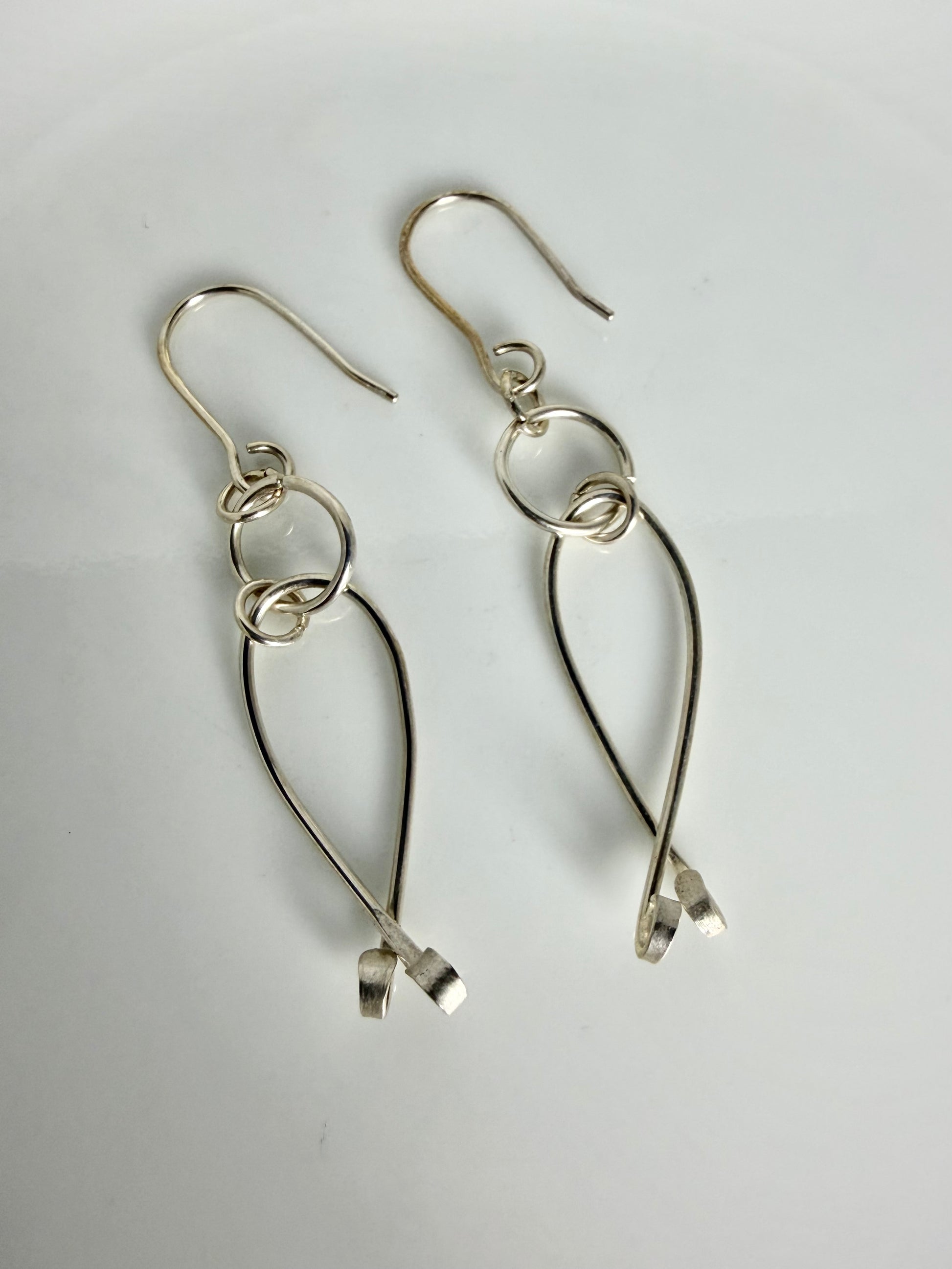 The Ichthus also known as the fish is a light weight dangling earring With a lot of movement. You have two options for metal sterling silver or titanium. The tail of the fish is hammered and curled. Ear wires are 20 gage.